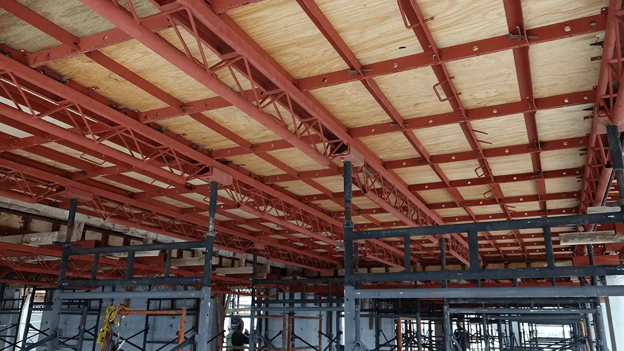 Centro comercial de 4 niveles con 1,000 m2 de cimbra y apuntalamiento.