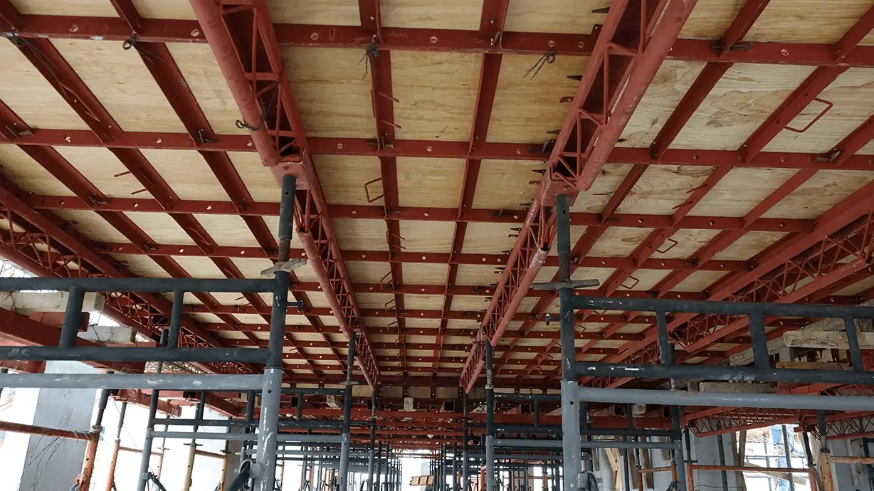 Torre habitacional de 17 niveles con sistema de cimbra y apuntalamiento.
